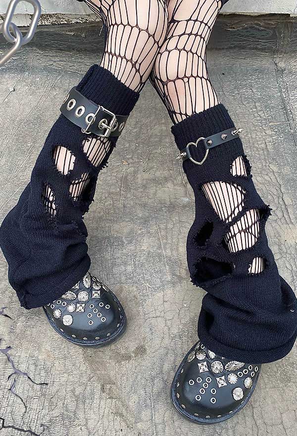 Y2K Leg Warmers - Gothic Harajuku Style With Buckle Details | Alternative Fashion